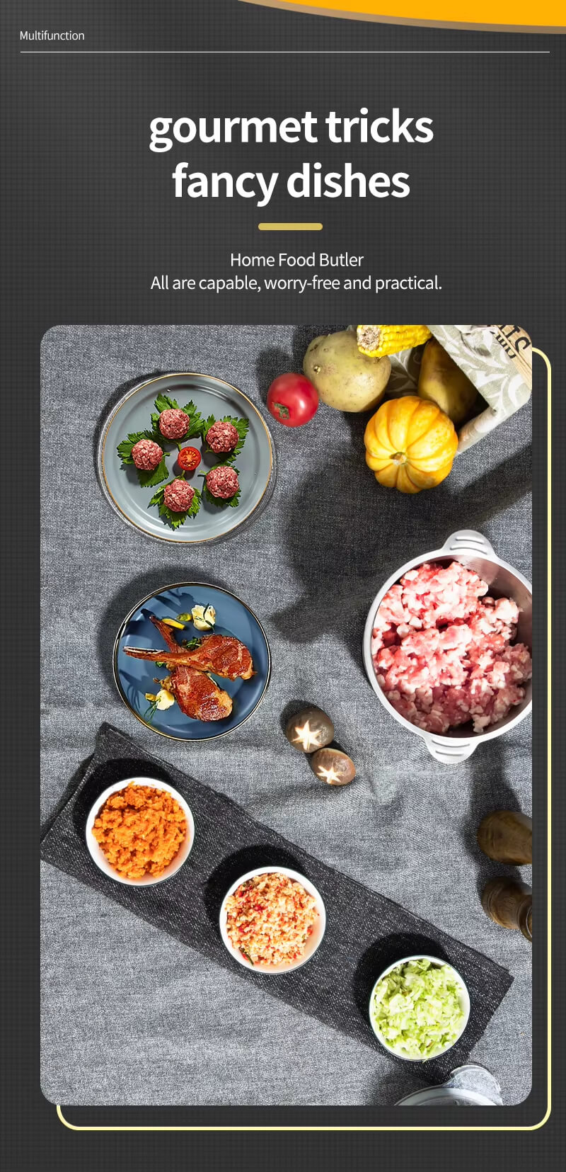 Power and processing capacity: Can easily handle tough ingredients such as frozen meat and beef with tendons, ensuring stable operation for a long time.